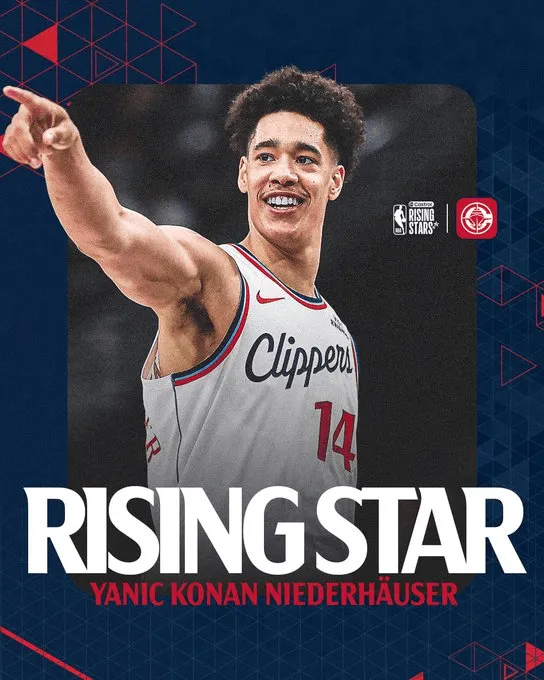 快船官方更新社媒:祝贺尼德豪泽入选今年全明星新秀赛。